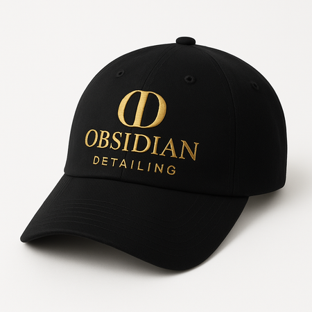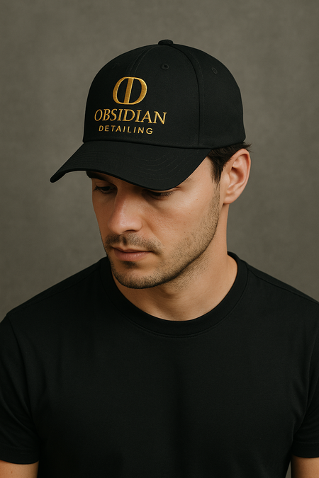 This premium black baseball cap features the iconic Obsidian Detailing “OD” monogram embroidered in metallic gold thread, symbolising precision and prestige. Built from high-quality cotton twill, it offers a structured fit, curved brim, and adjustable strap for everyday comfort and durability.
